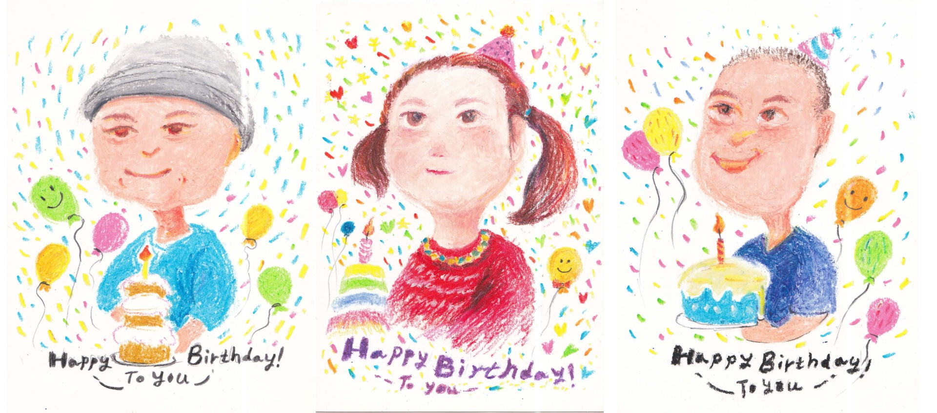 在蠟筆畫裡,一件物品也能有好多不同的構圖方式。